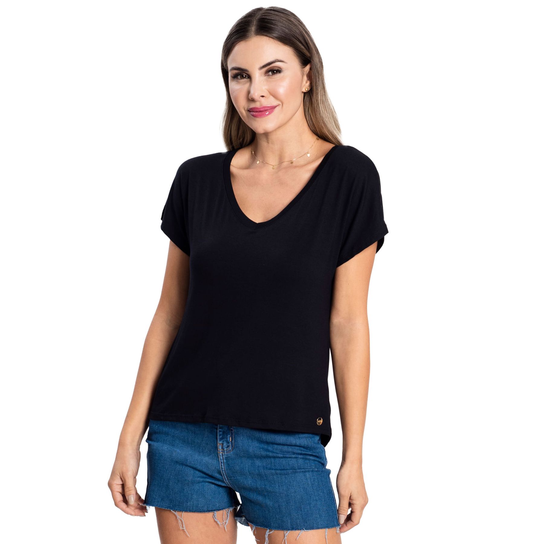 Blusa Feminina Manga Curta em Ribana Endless Preto