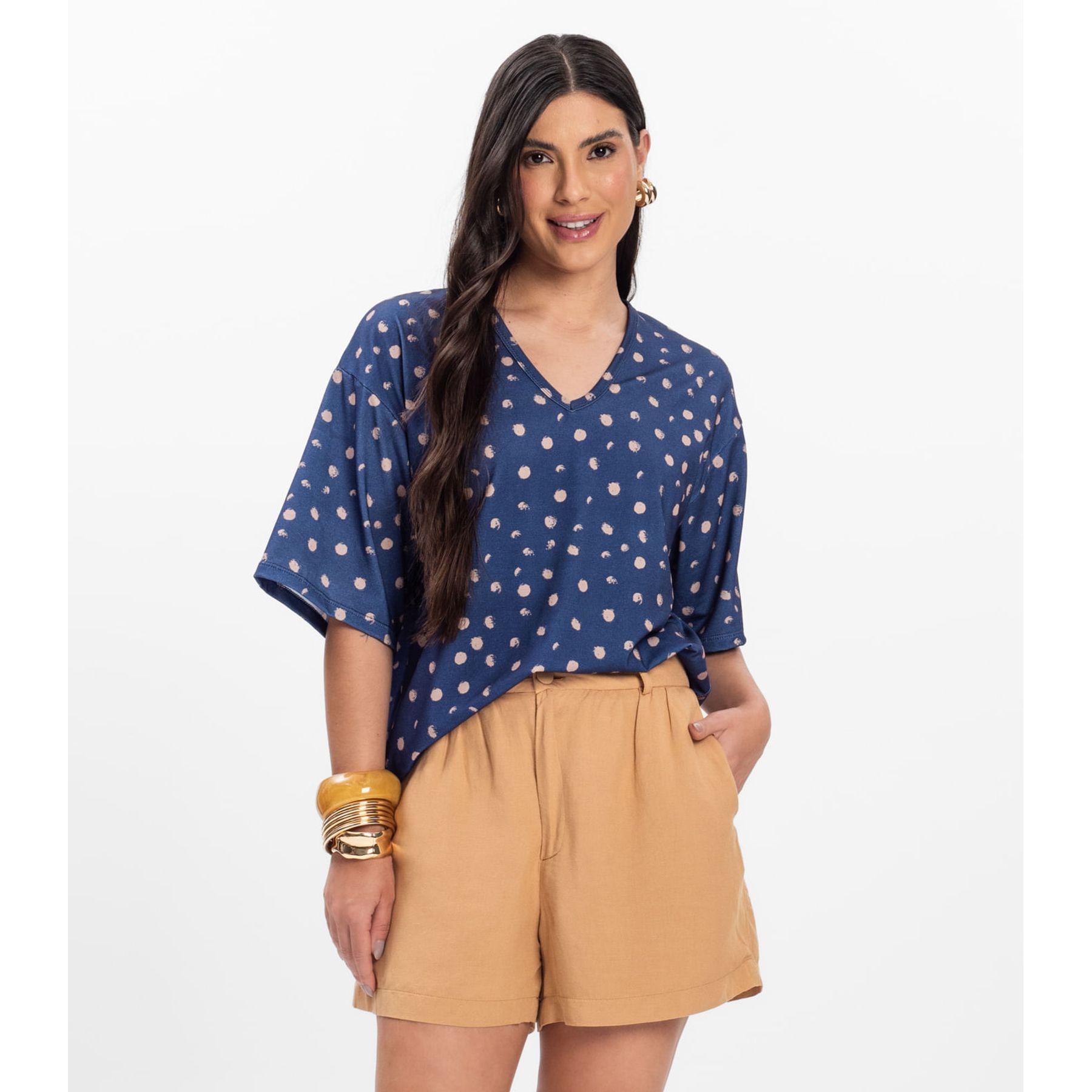 Blusa Feminina Manga Curta em Ribana Endless Bege