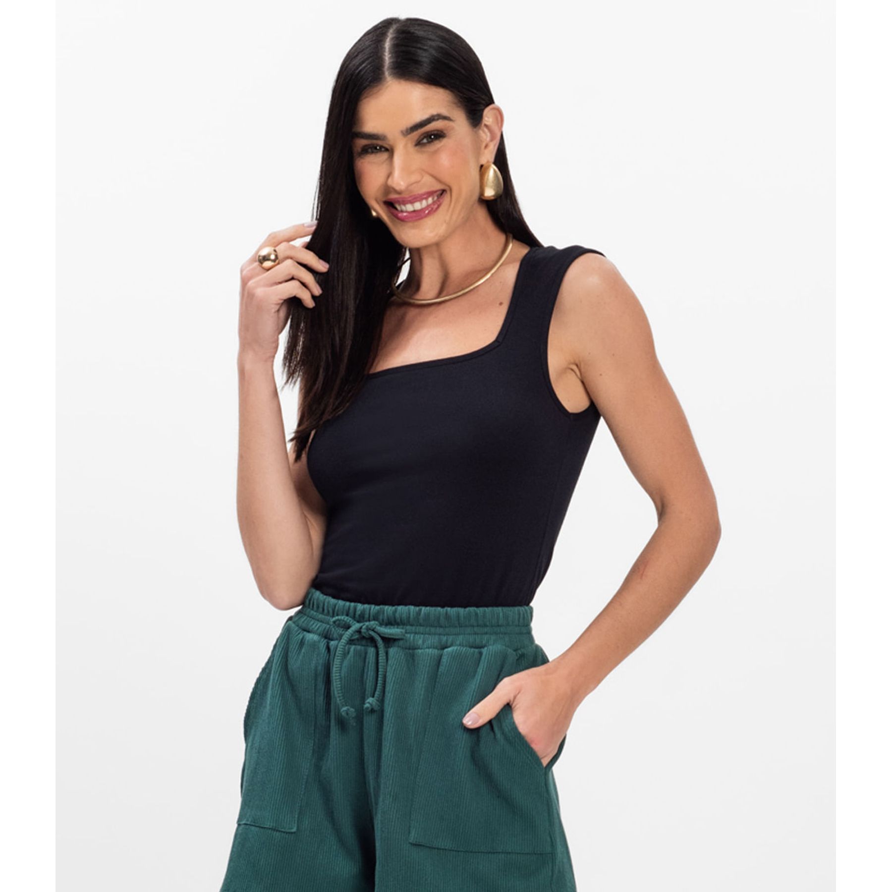 Blusa de Alça Visco Maquinetada Feminina Endless Preto