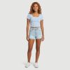 Blusa Cropped Feminina Visco Maquinetada Rovitex Azul