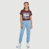 Com manga curta e gola redonda, possui estampa frontal tipográfica com as palavras “BASEBALL”, “Chicago” e “ATHLETICS”, centralizada na parte da frente. A cor marrom facilita combinações com jeans, saias e peças de cintura alta.