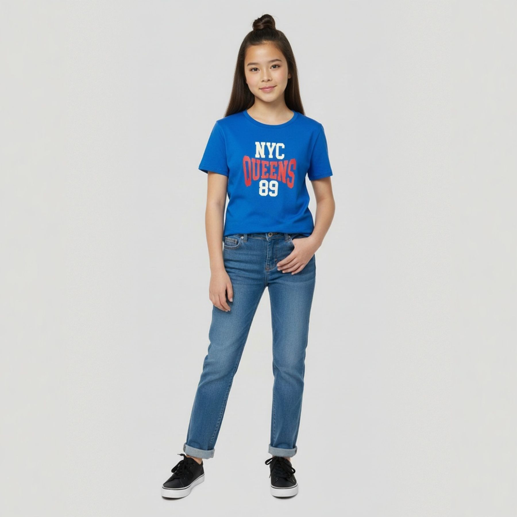 Economia de R$ 3,00Blusa feminina confeccionada em malha circular 100% algodão, da Love Trend, que combina praticidade com estilo moderno. Apresenta estampa frontal com as palavras 'NYC QUEENS 89' em branco e vermelho, agregando um toque urbano à peça. Possui gola redonda e é uma escolha ideal para produções descontraídas.