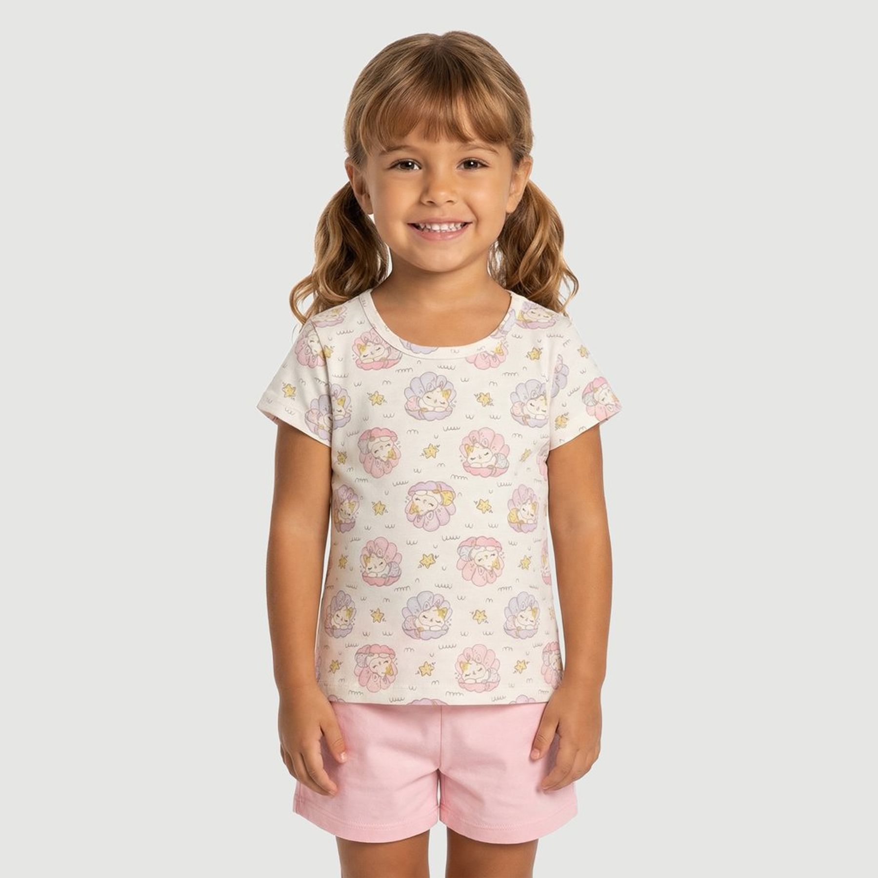Blusa Infantil Manga Curta com Estampa De Gatinho Rosa - Yeapp