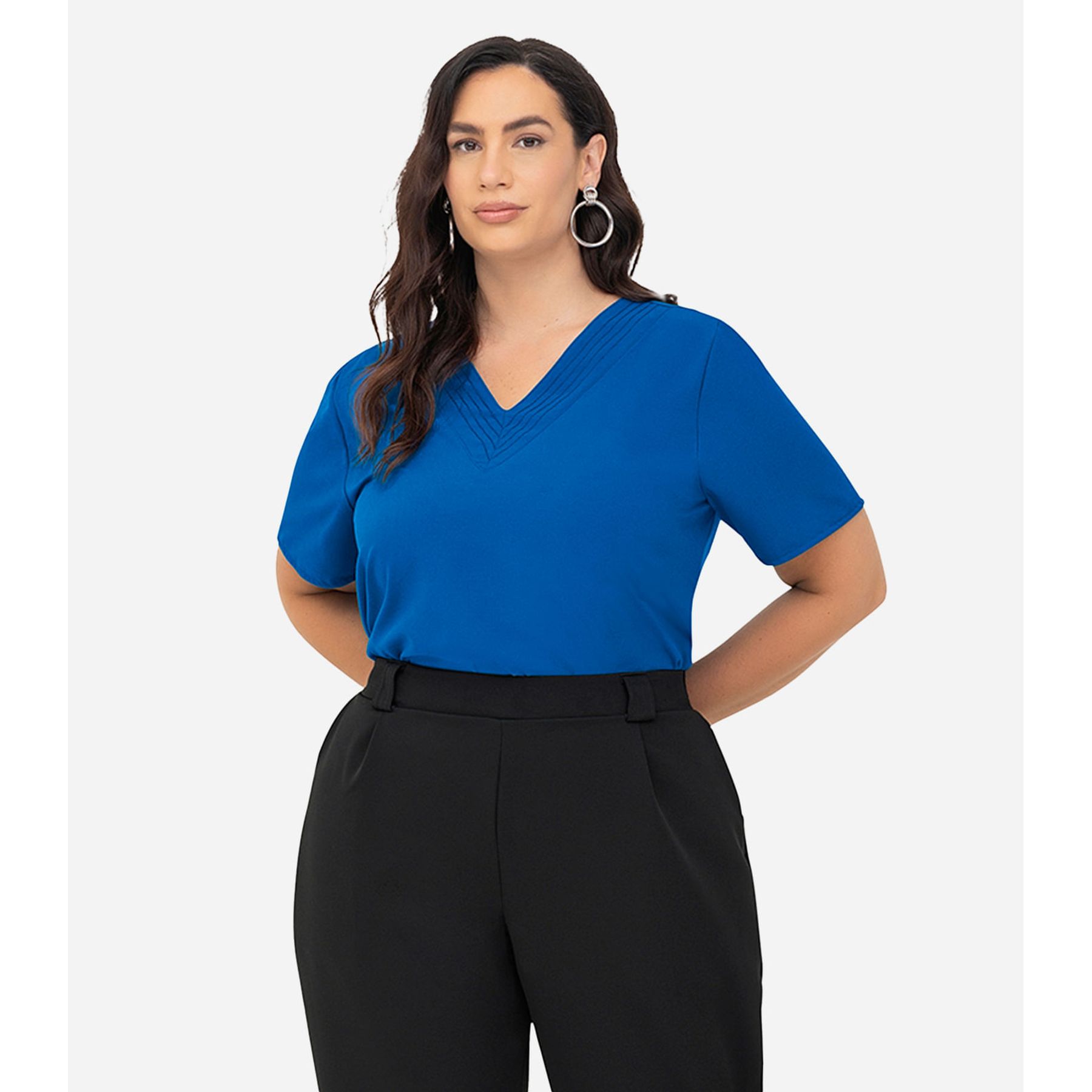 Blusa Manga Curta Feminina Plus Size Secret Glam Azul