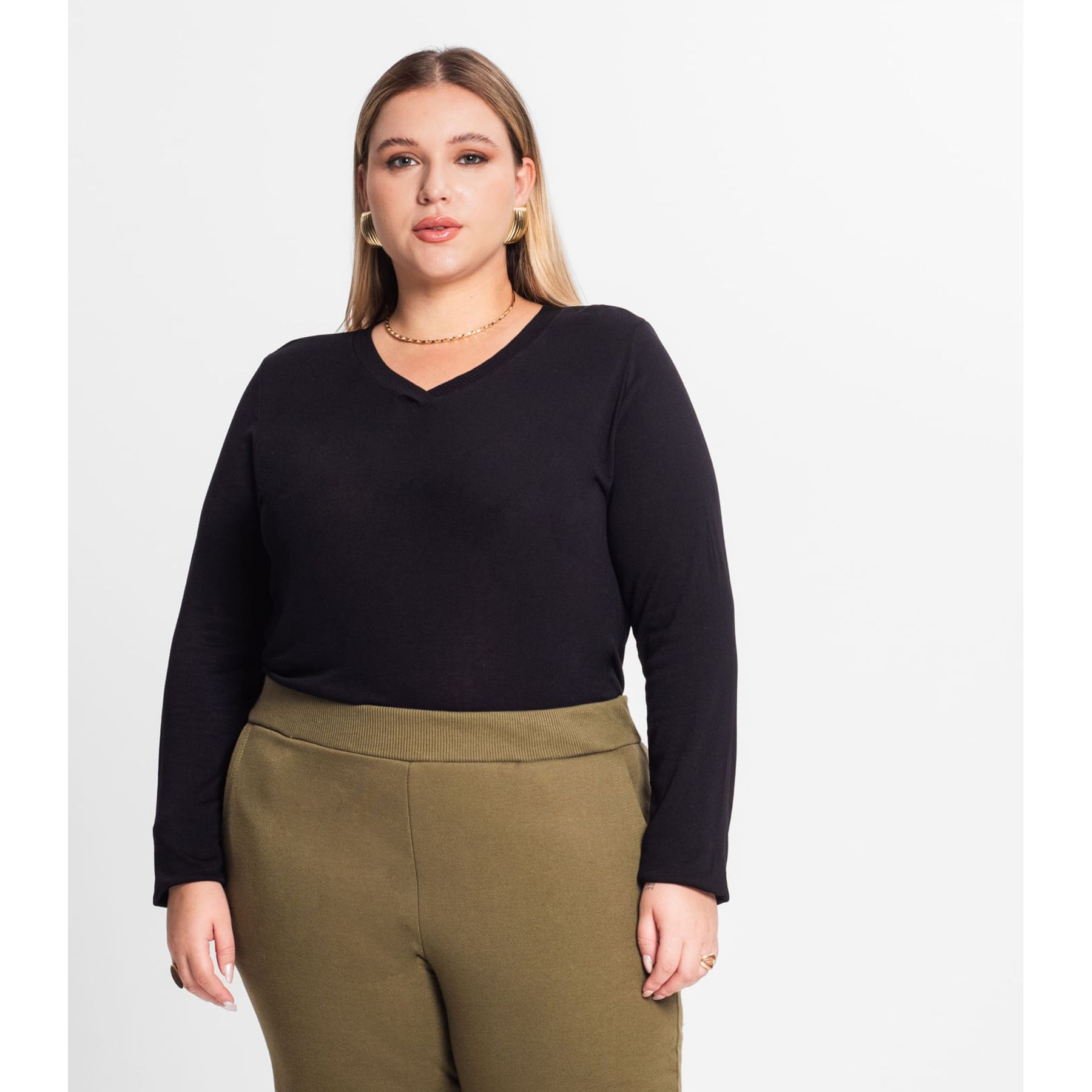 Blusa Feminino Plus Size Preto Liso Viva