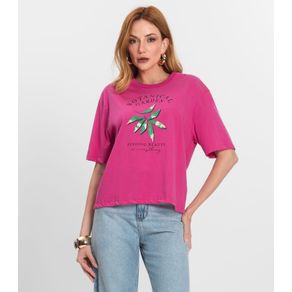 Camiseta Feminino Manga Curta Meia Malha Endless Rosa