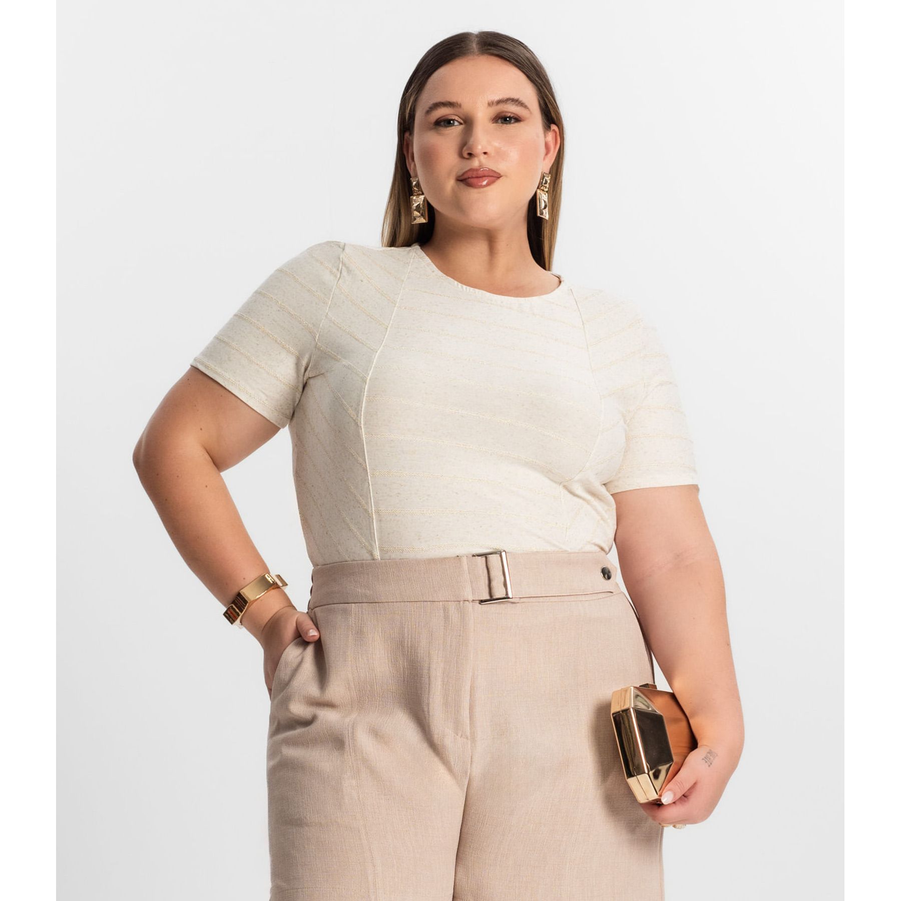 Blusa Feminina Manga Curta em Ribana Endless Bege