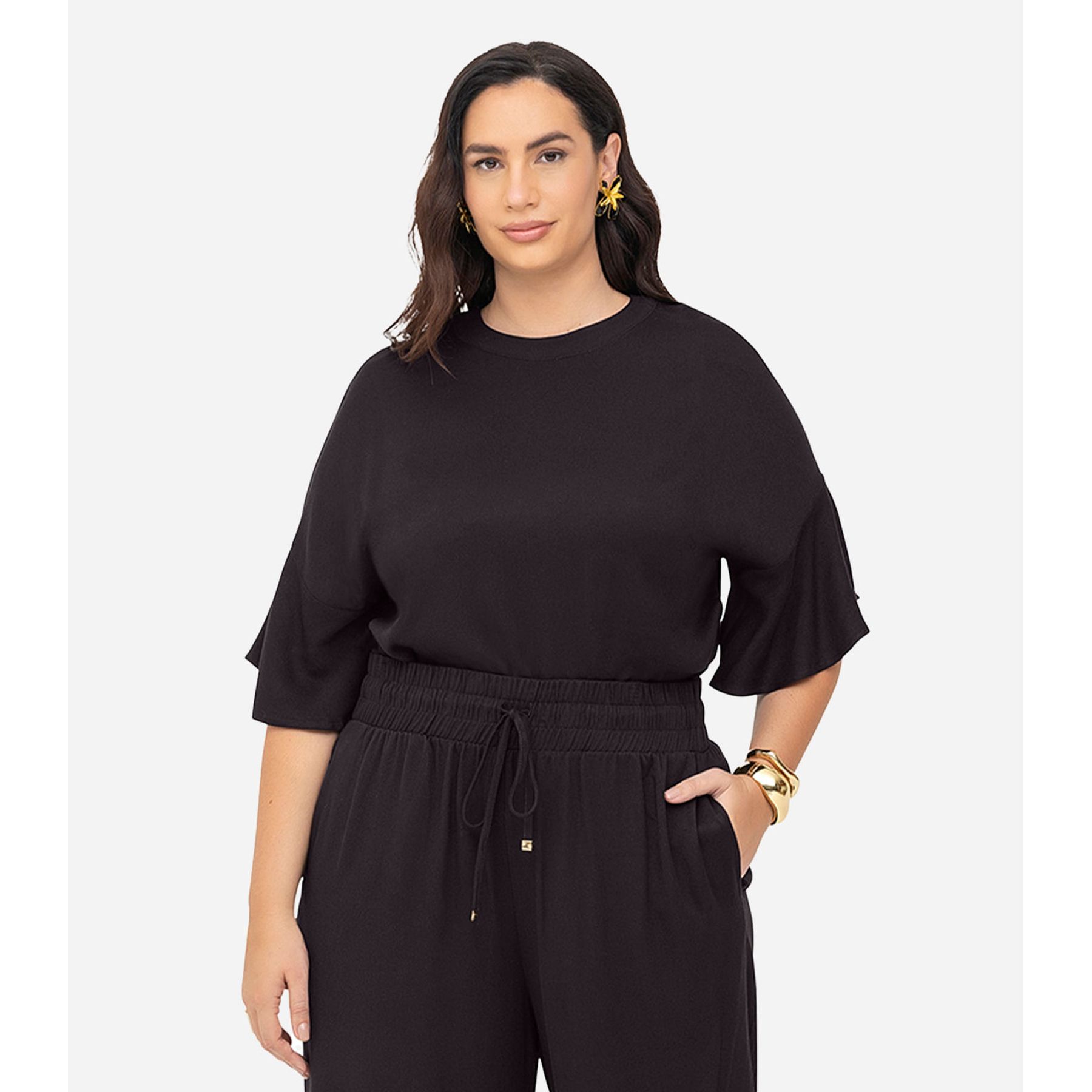 Blusa Manga Curta Feminina Plus Size Secret Glam Preto