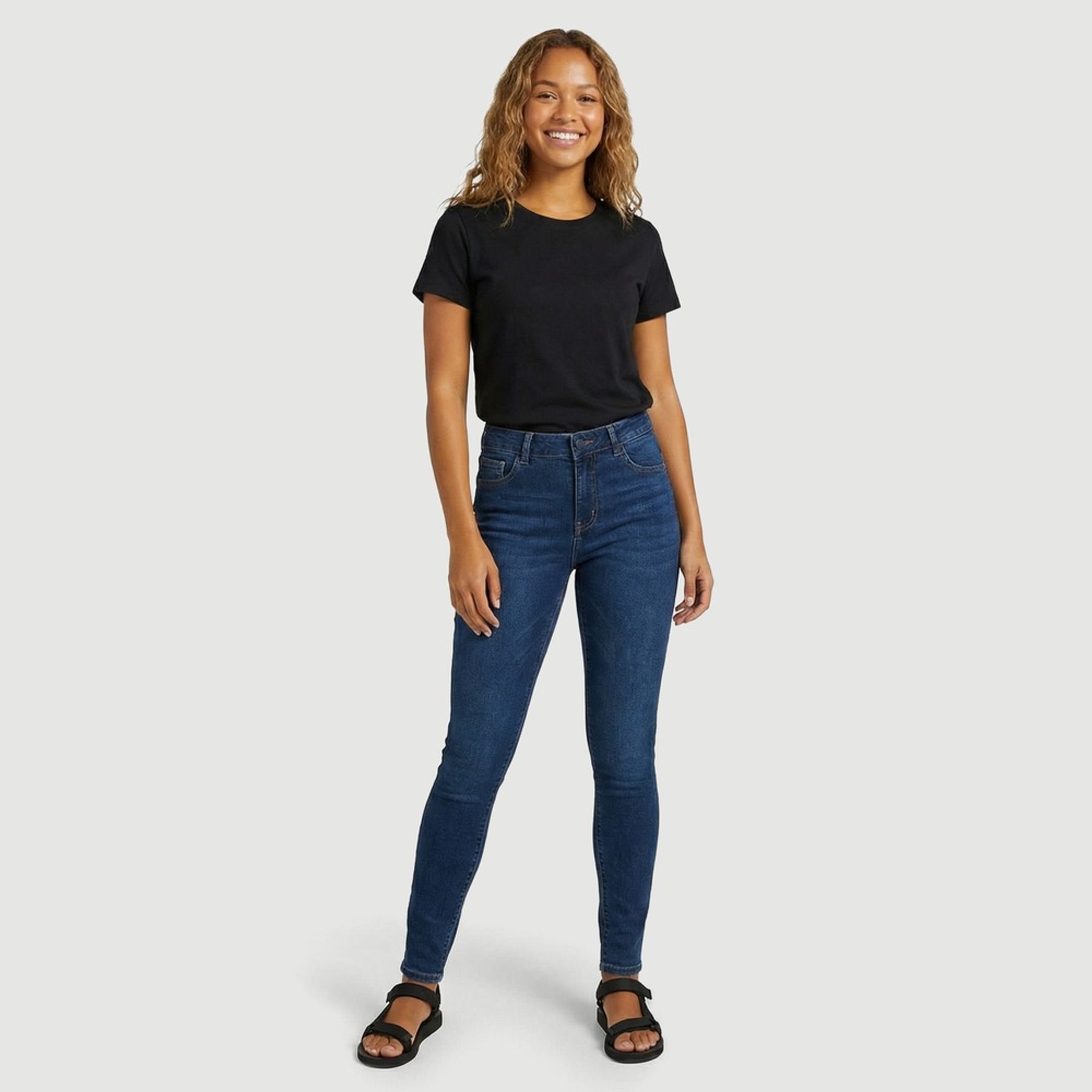 Calça Jeans Feminina Plus Size Skinny Básica Azul Médio Lisa - INK
