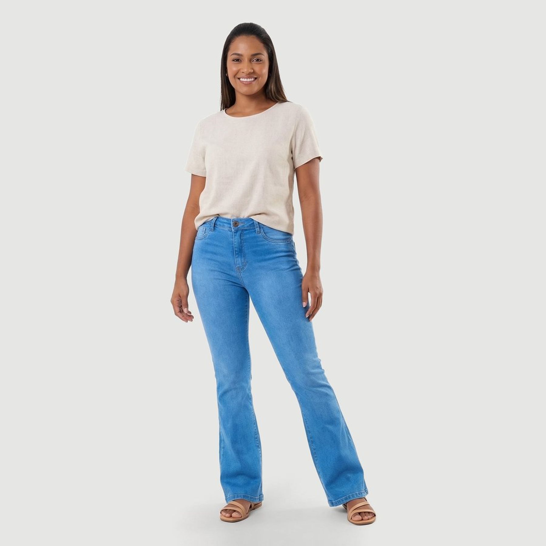 Calça Jeans Feminina Reta Plus Size Lisa Azul Médio - Ink