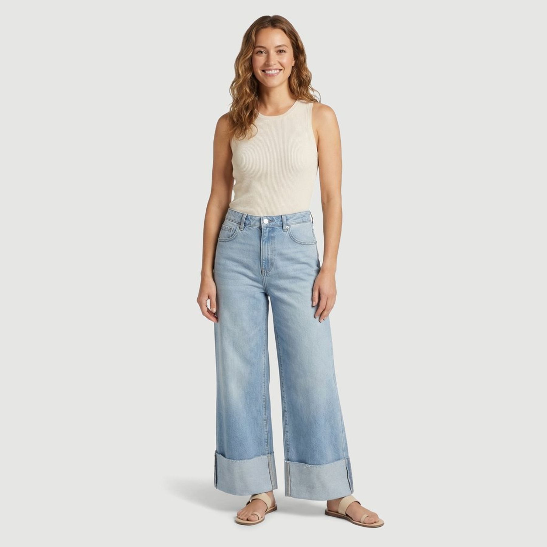 Calça Feminina Wide Leg Sarja Lisa Preta - Sawary