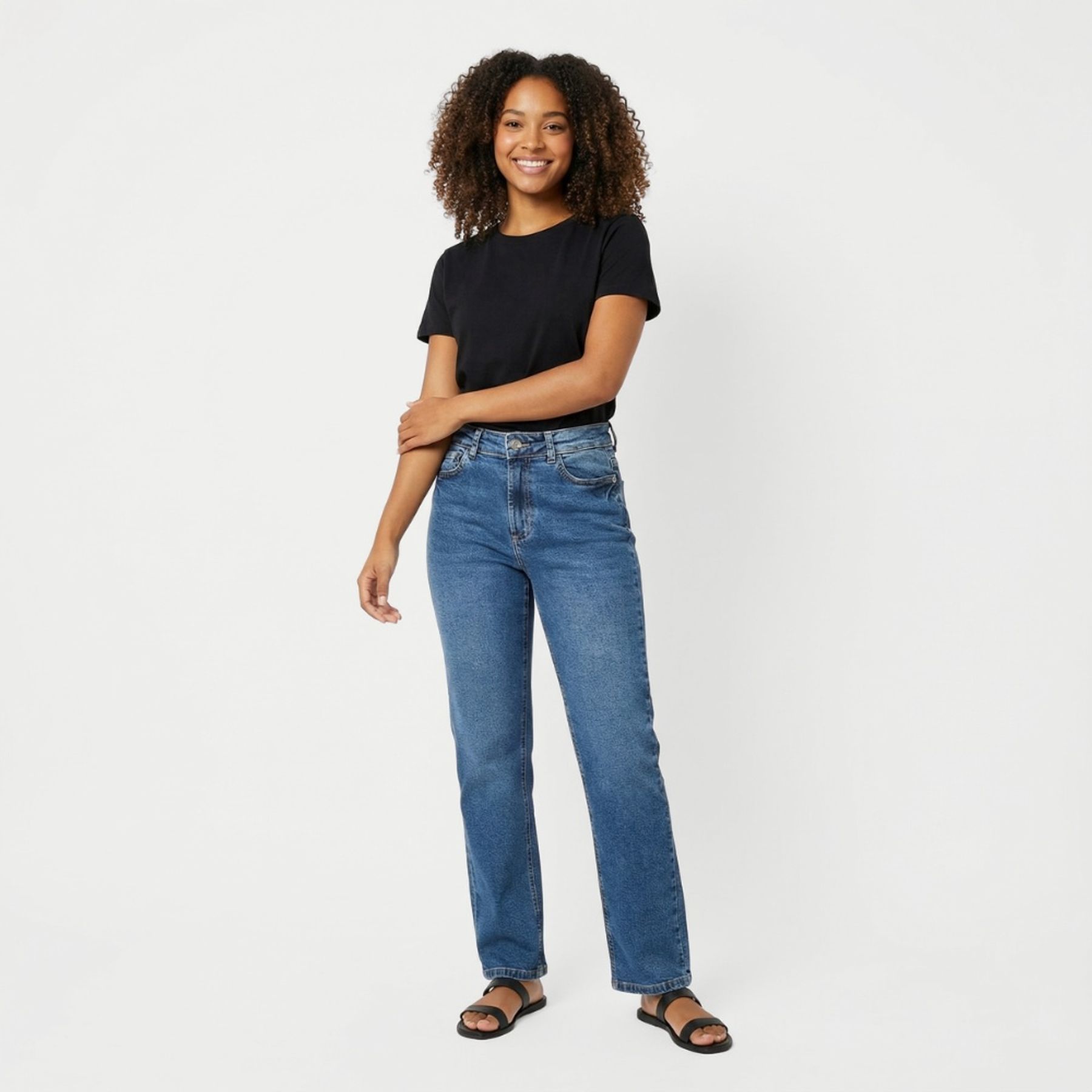 Calça Jeans Feminina Mom Bolsos Frontais Preta - INK