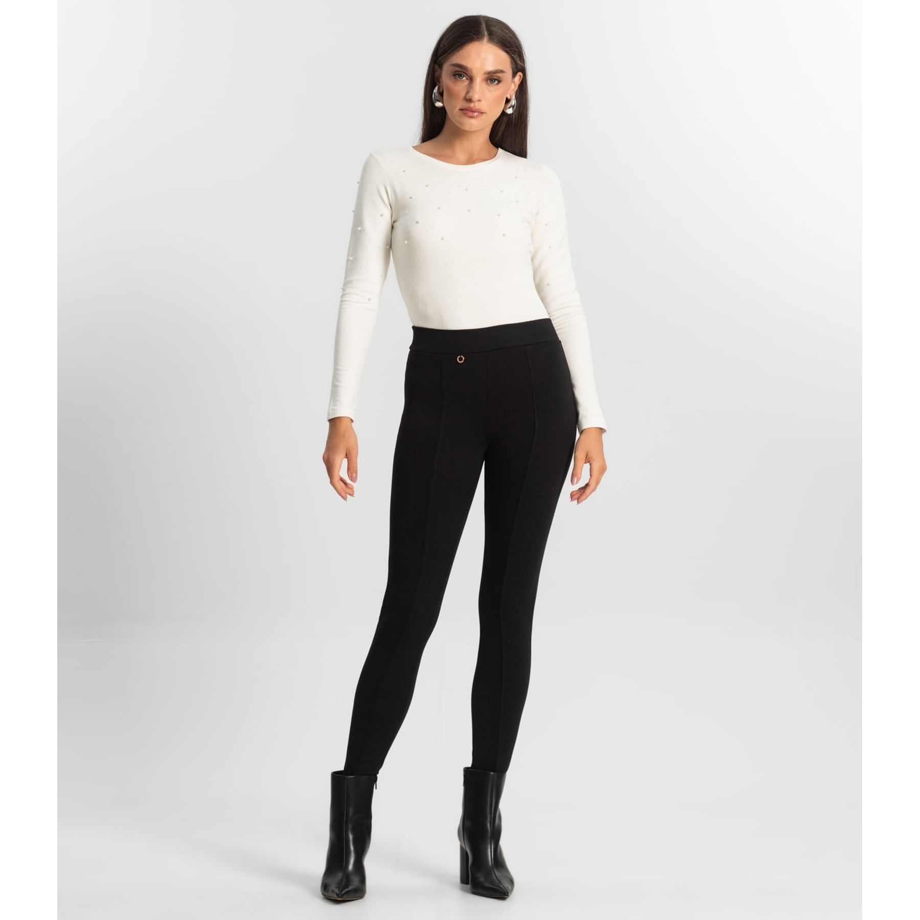 Calça Feminina Sawary Sarja Reta Preta com Bolsos Carpenter