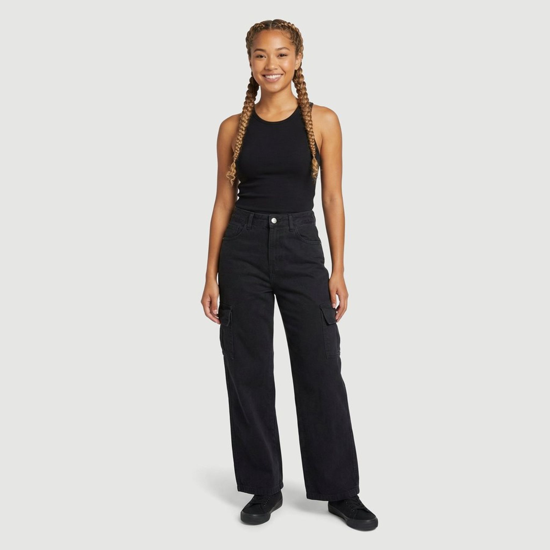 Calça De Sarja Preta Wide Leg Lisa - INK