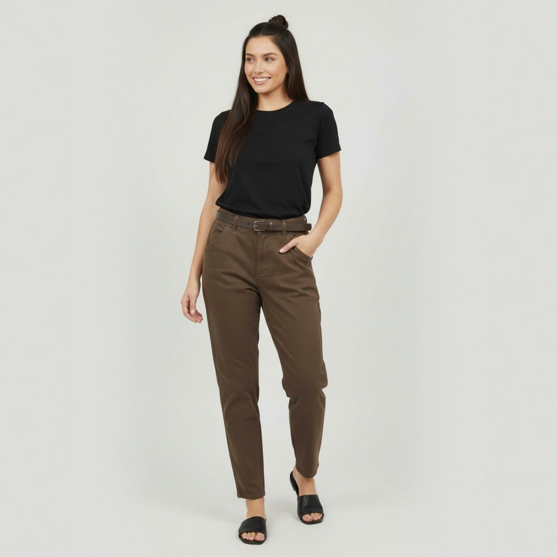 Calça sarja feminina mom cintura alta marrom - Sawary
