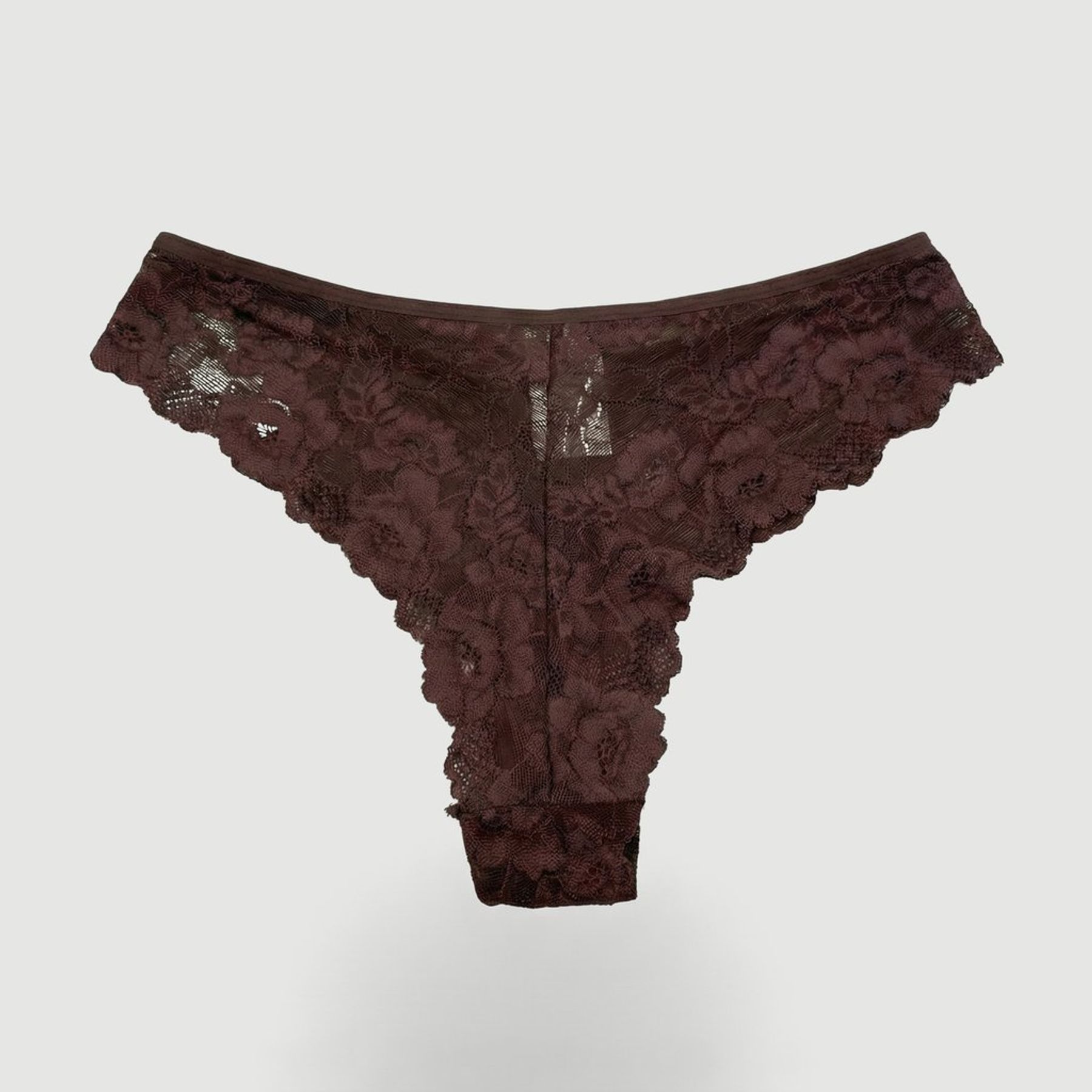 Calcinha Tanga Renda Viscose Marrom - Uniq