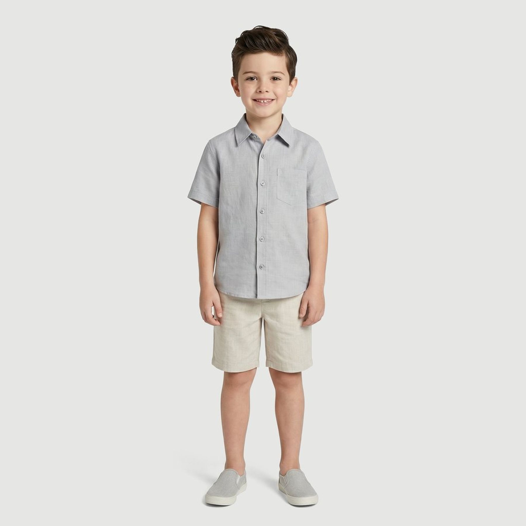 Confeccionada em tecido misto com predominância de algodão, oferece bom conforto ao longo do uso. Possui gola com colarinho, fechamento frontal por botões, bolso frontal funcional e barra reta, ficando bem tanto por dentro quanto por fora da calça.