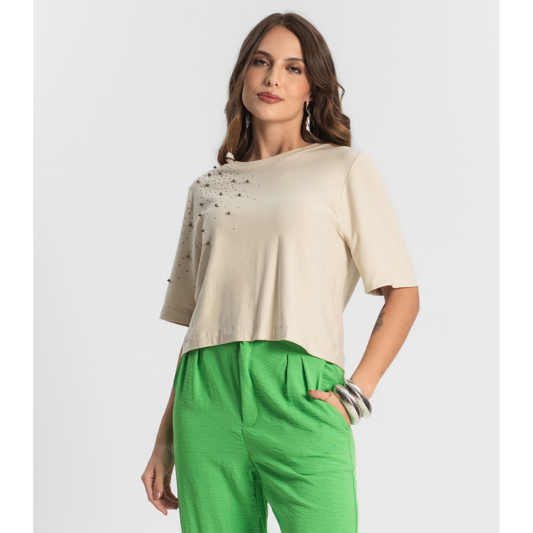 Camiseta Masculina Malha Maquinetada Diametro Bege