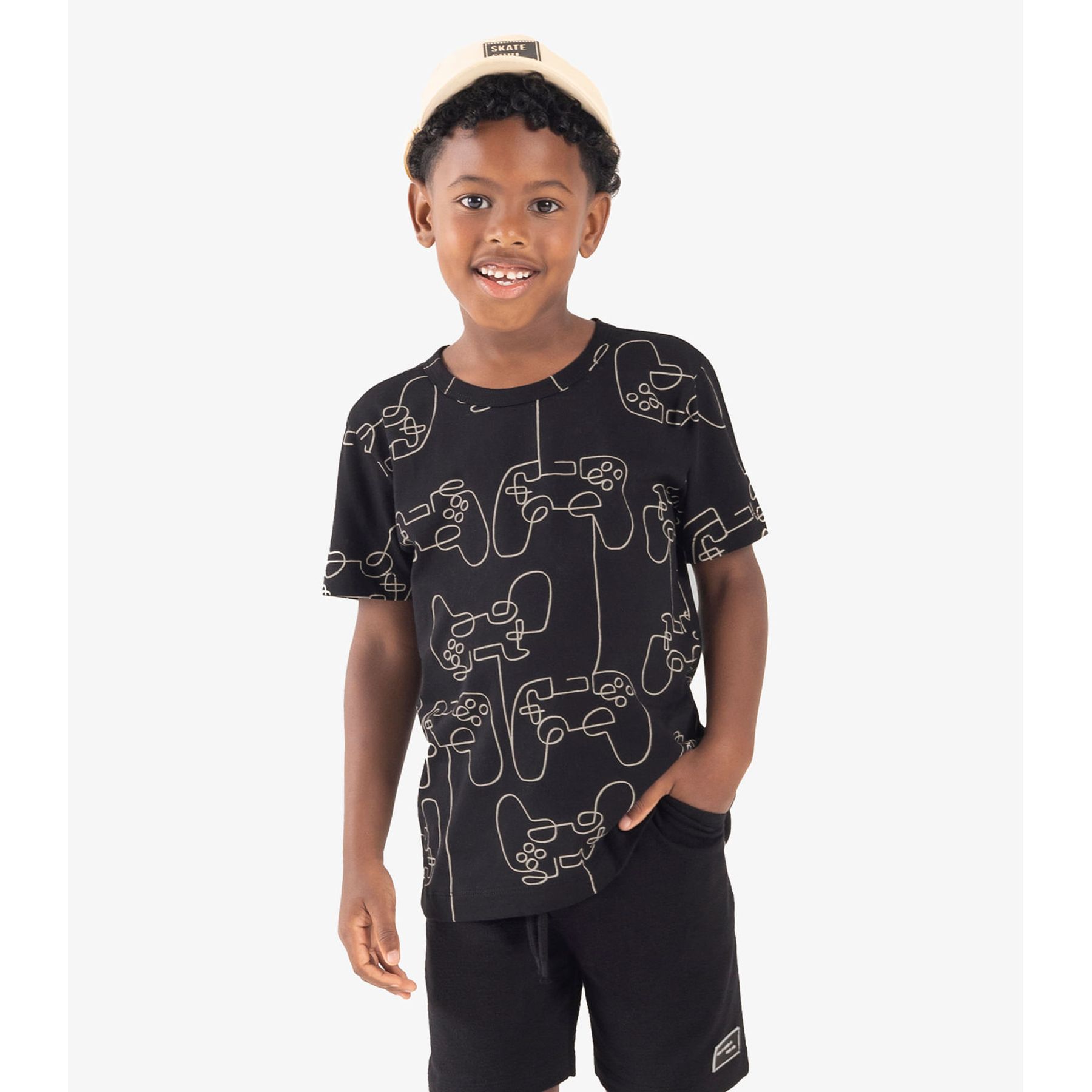 Camiseta Menino em Meia Malha Trick Nick Preto