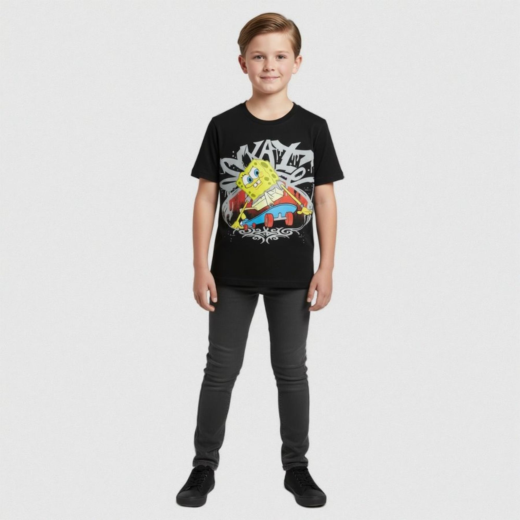 Camiseta Manga Curta Bob Esponja Liso Preto - Nickelodeon