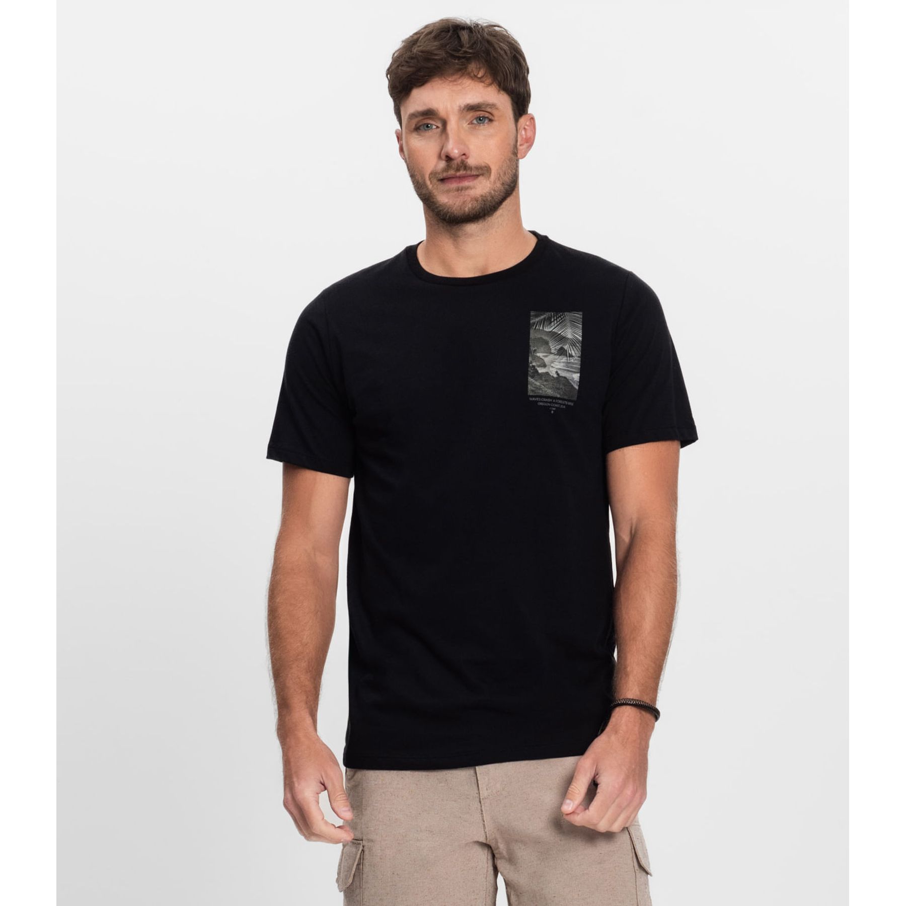 Camiseta Masculina Manga Curta Meia Malha Diametro Preto