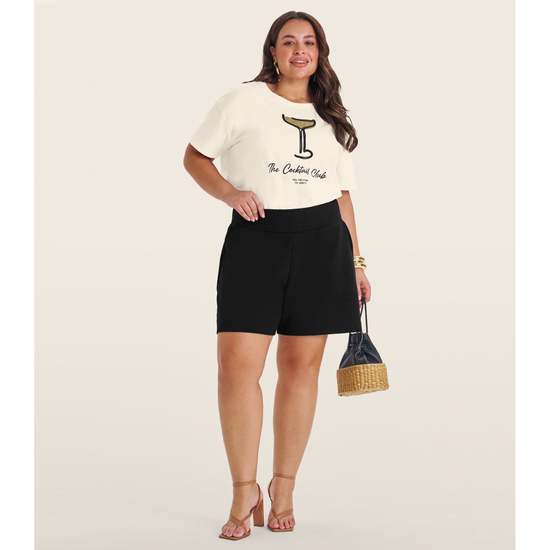 Camiseta Plus Size em Meia Malha Secret Glam Bege