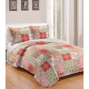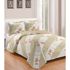 Colcha Queen Bouti Patchwork Microfibra Rozac Bege
