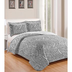 Colcha Casal Bouti Patchwork Microfibra Rozac Cinza