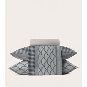 Jogo De Colcha Queen Milão 150 Fios Corttex Azul