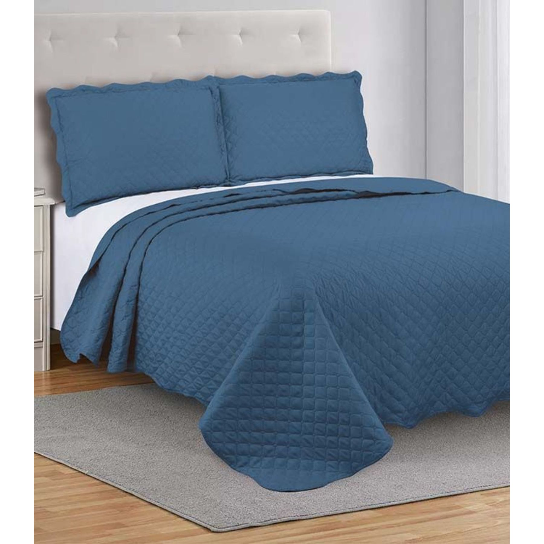 Jogo De Colcha Queen Milão 150 Fios Corttex Azul