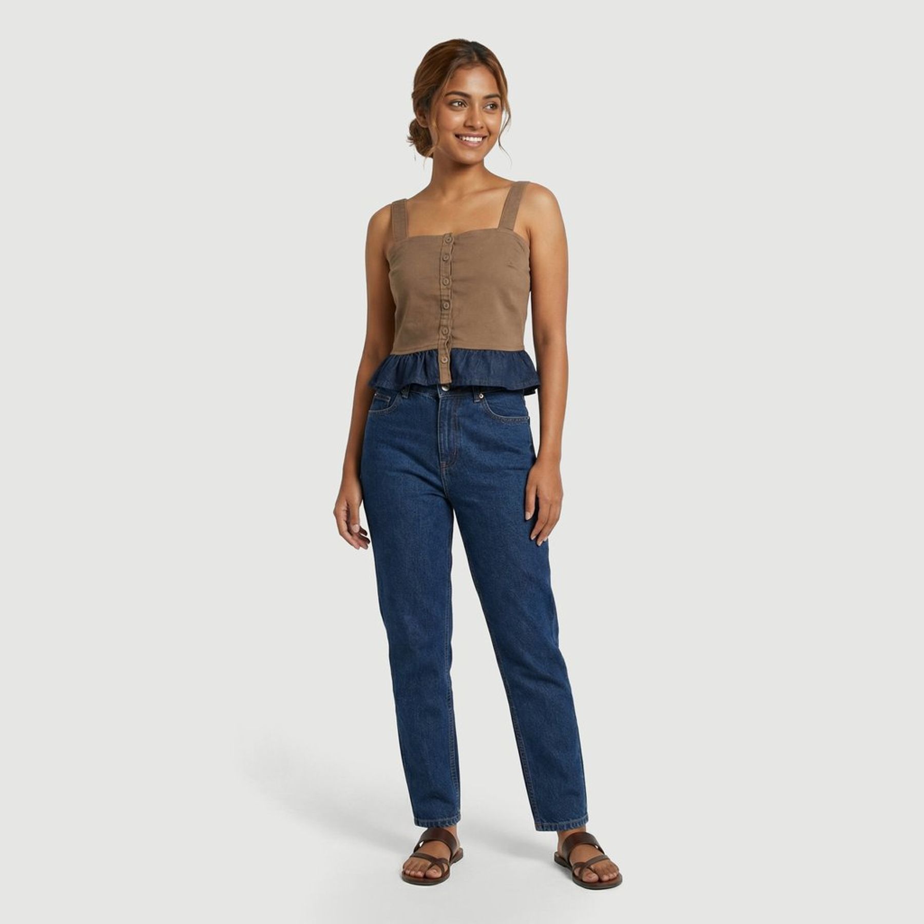 Top Jeans Com Abotoamento Frontal Jeans Medio - INK