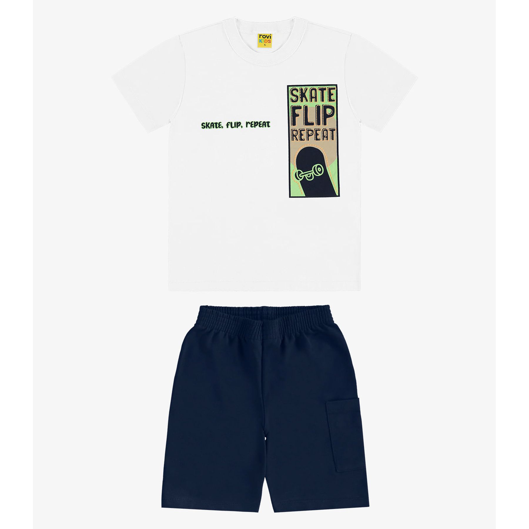 Conjunto Camiseta com Bermuda Menino Rovi Kids Branco