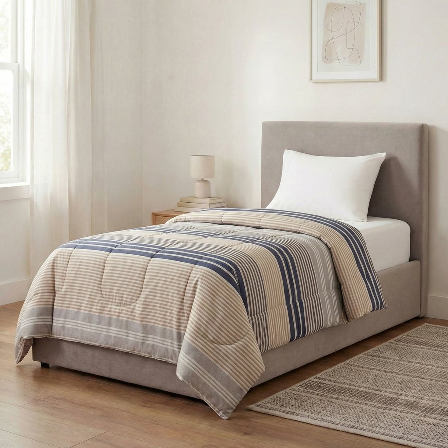 Edredom King Listrado Azul/Branco - Oliveira Lopes