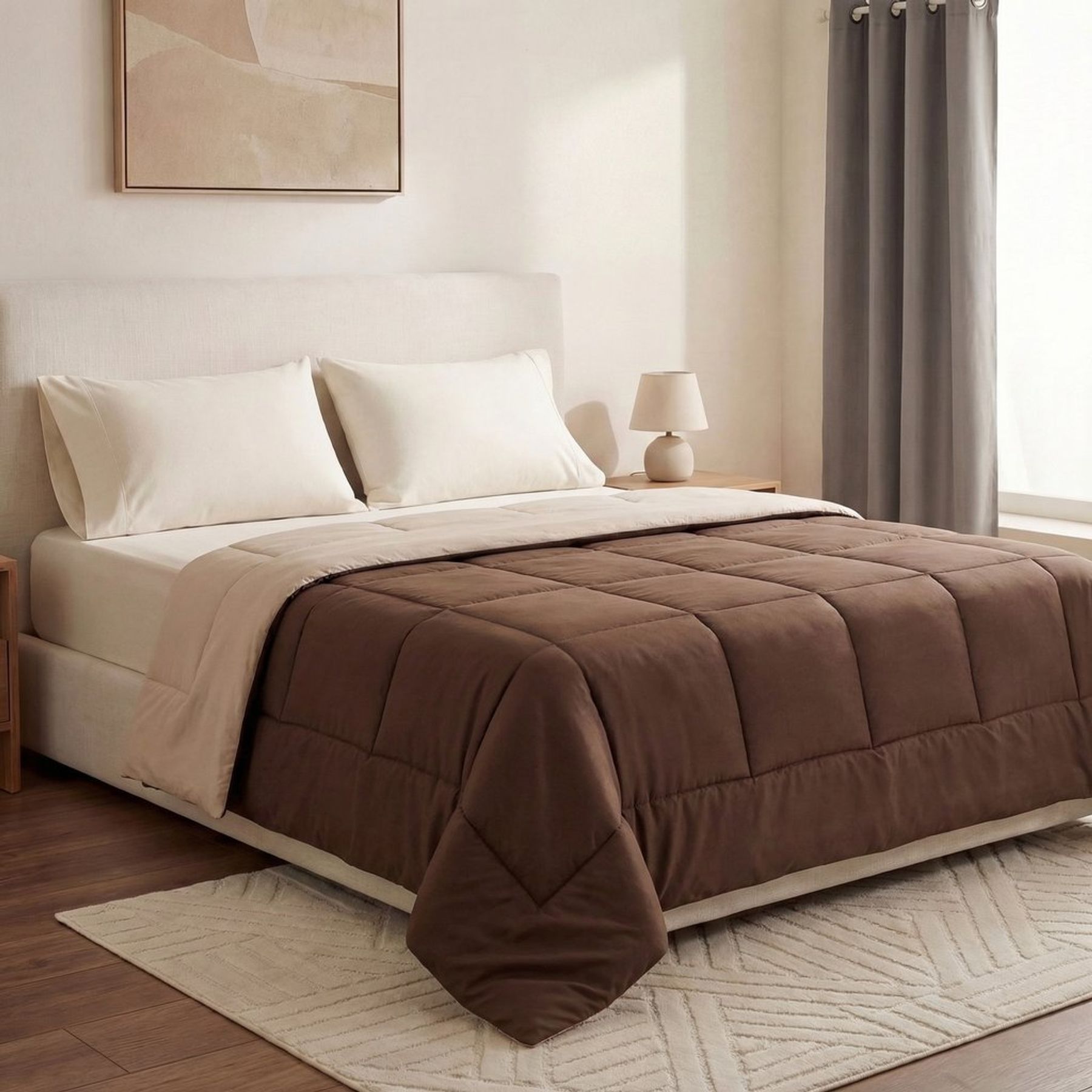 Edredom Casal Microfibra Floral Bege - Oliveira Lopes