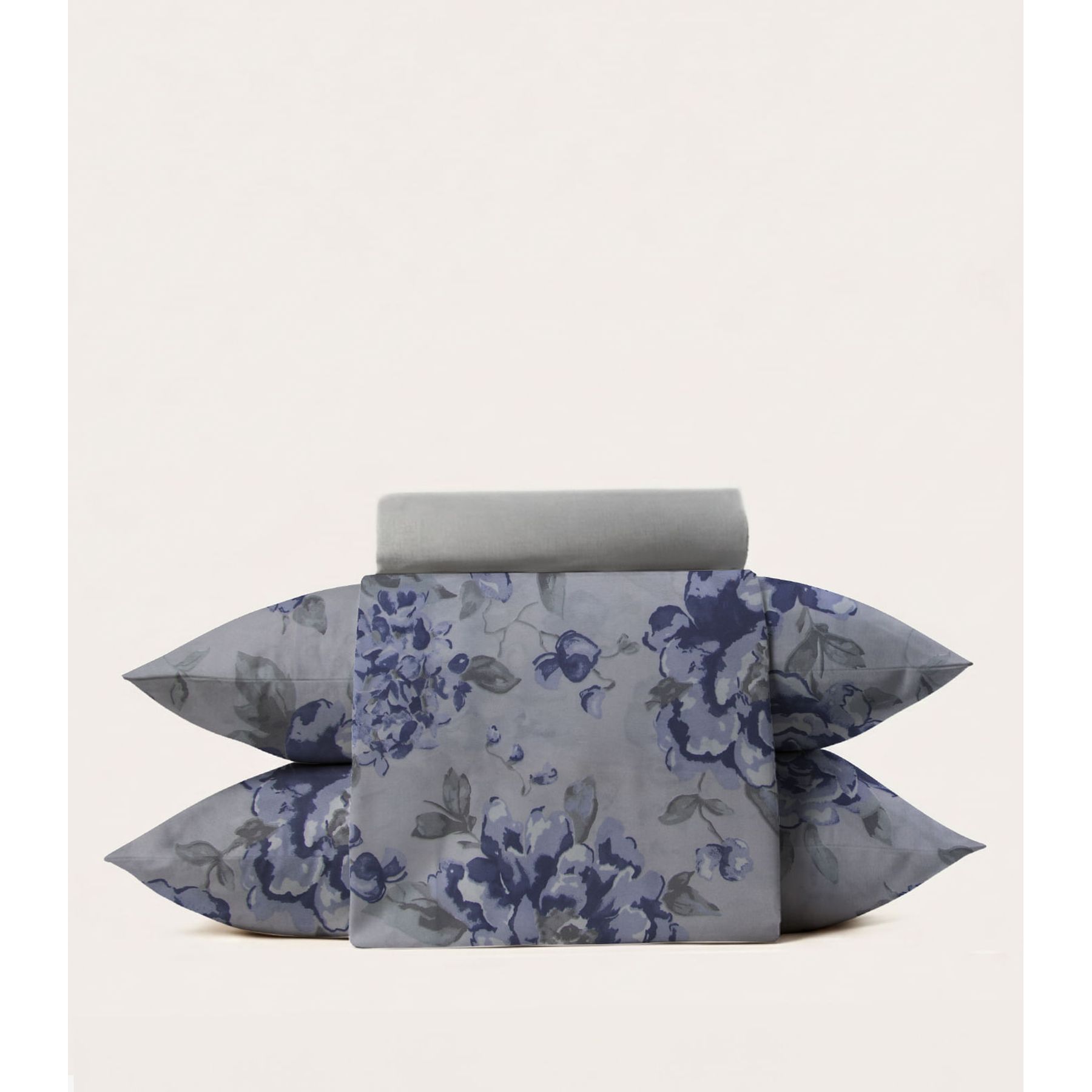 Jogo Cama Solteiro 3Pç Algodão Floral Cinza - Oliveira Lopes