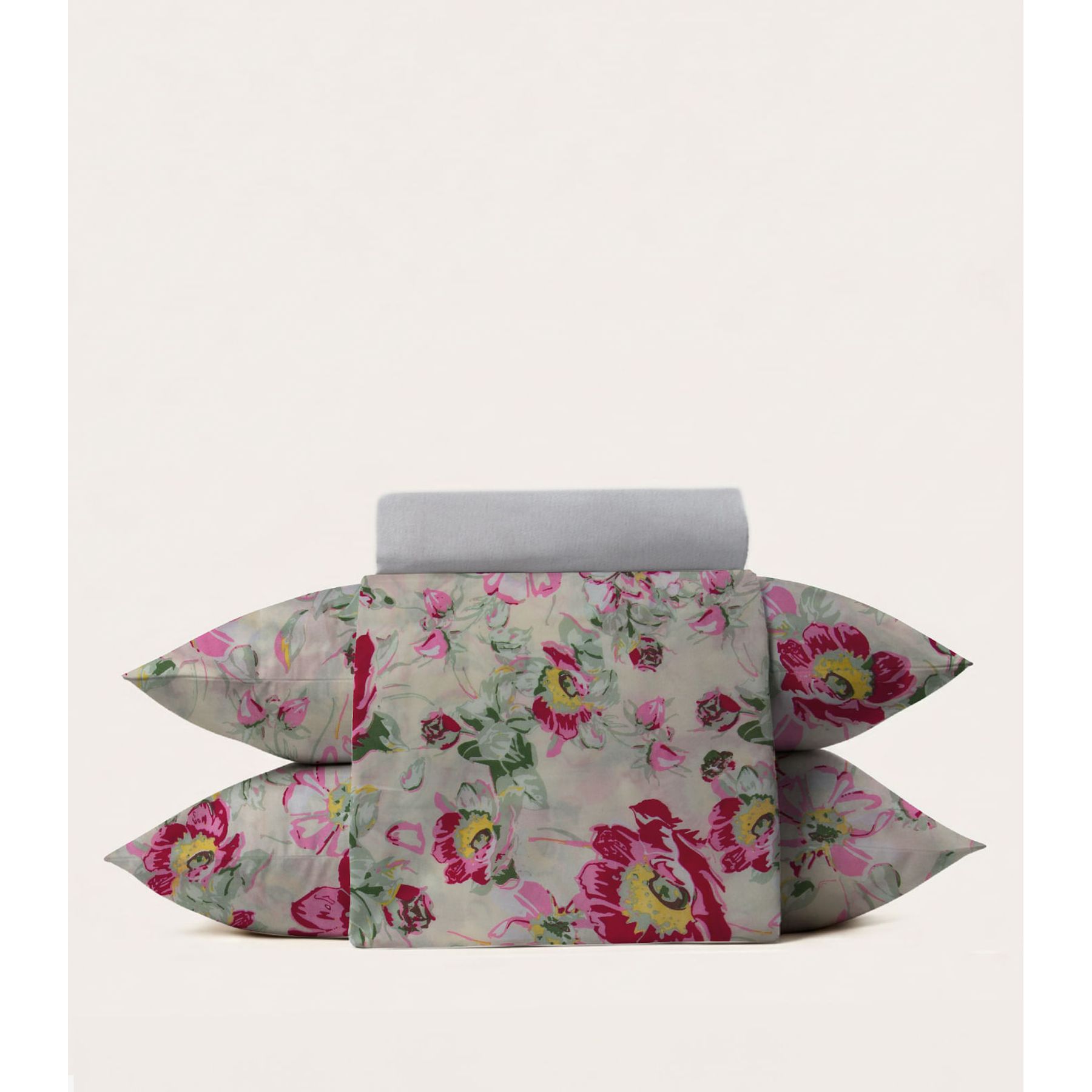 Jogo Cama Casal 4P Floral Bege
