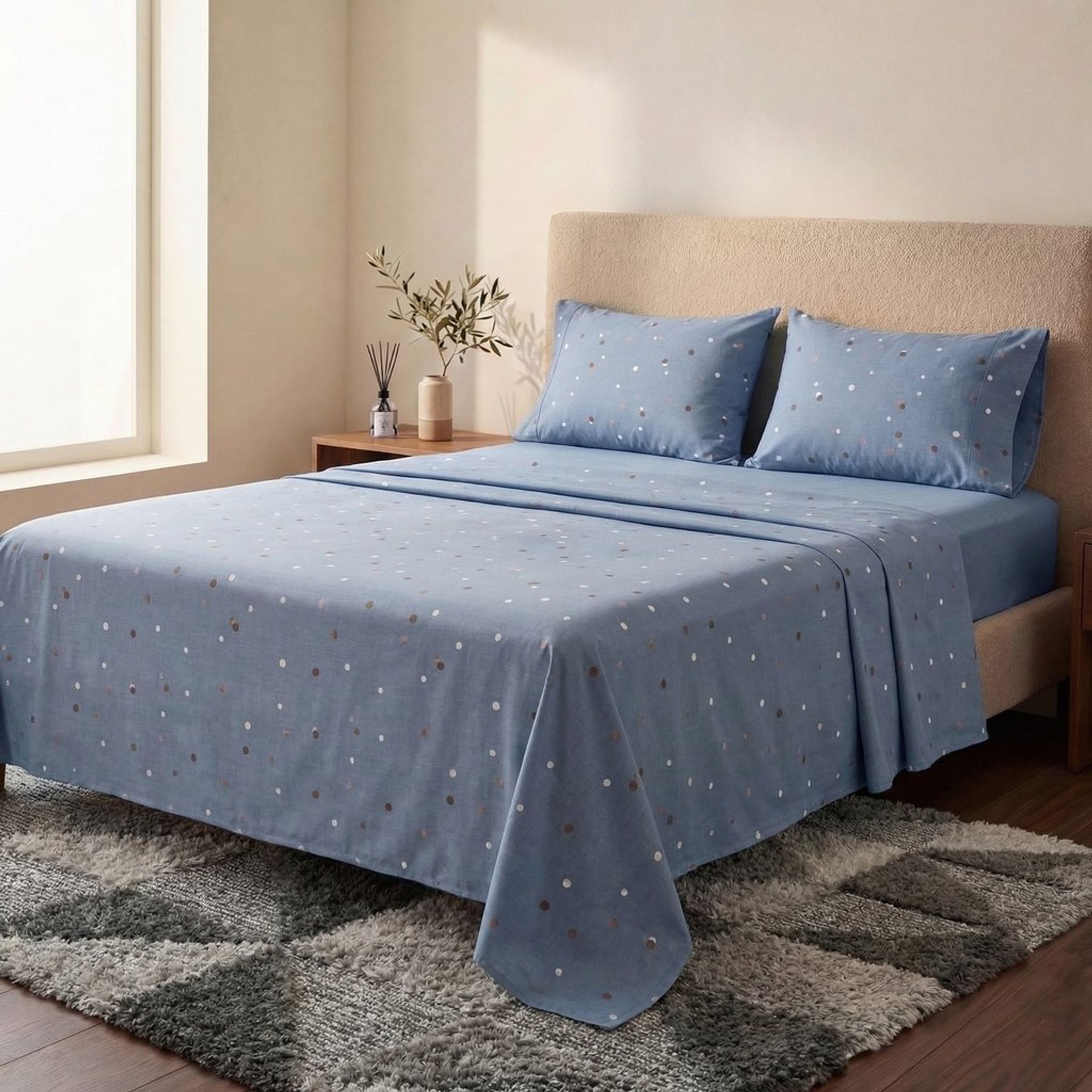 Jogo De Cama Azul Estampado Pnb Casa
