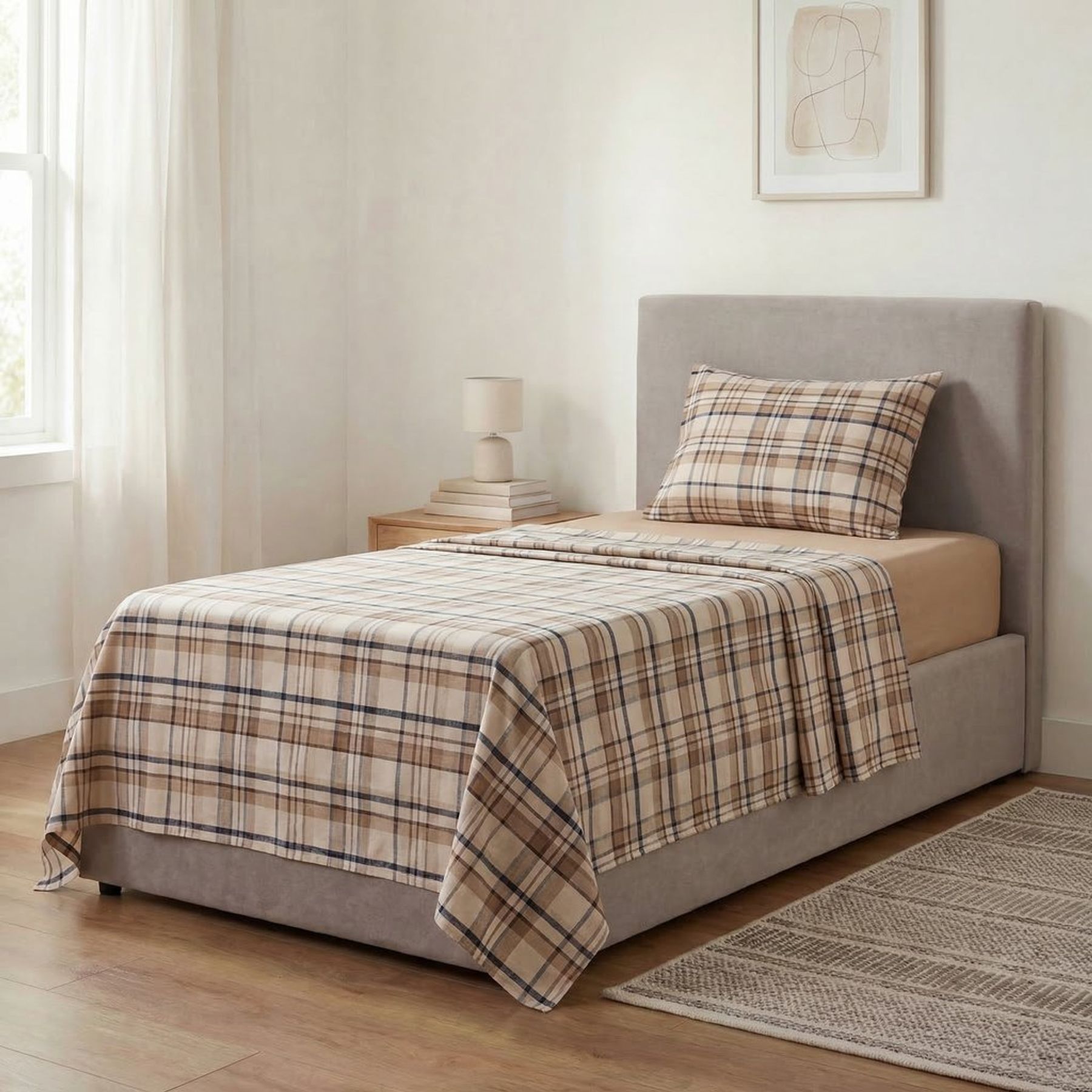 Jogo Cama Casal 4P Microfibra Xadrez Bege - Oliveira Lopes
