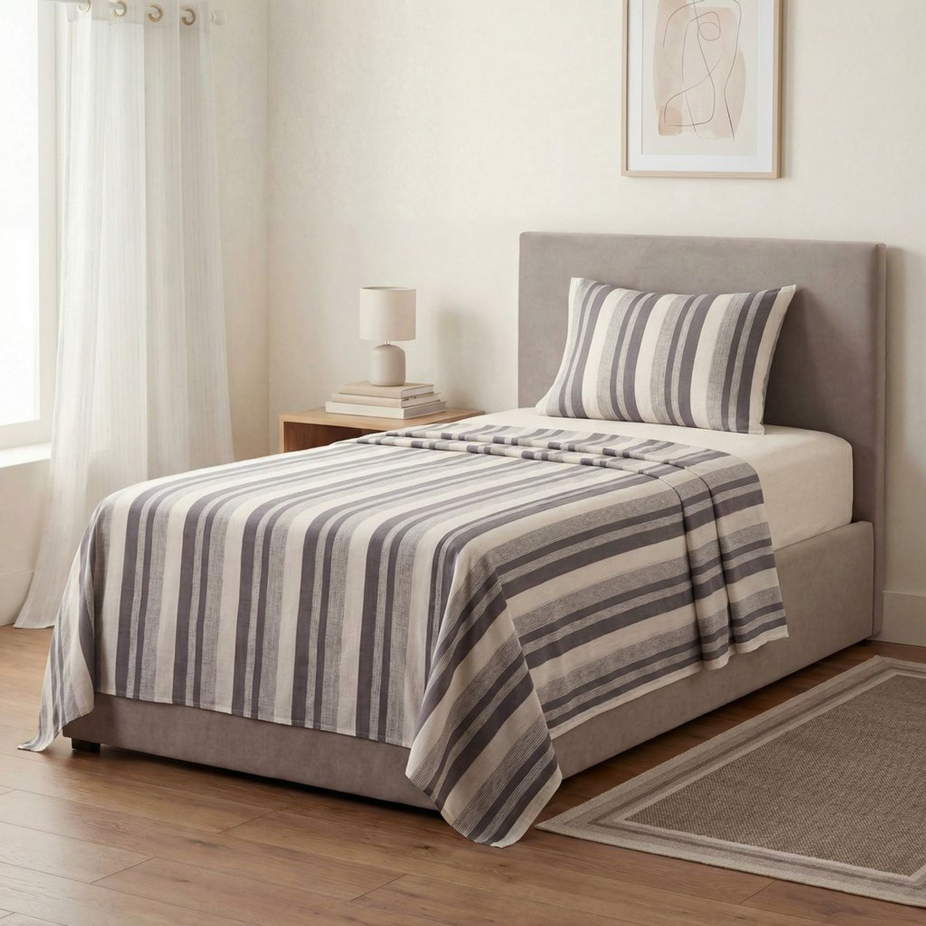 Jogo de Cama Solteiro 2 Peças Malha Estampado Azul e Cinza - PNB