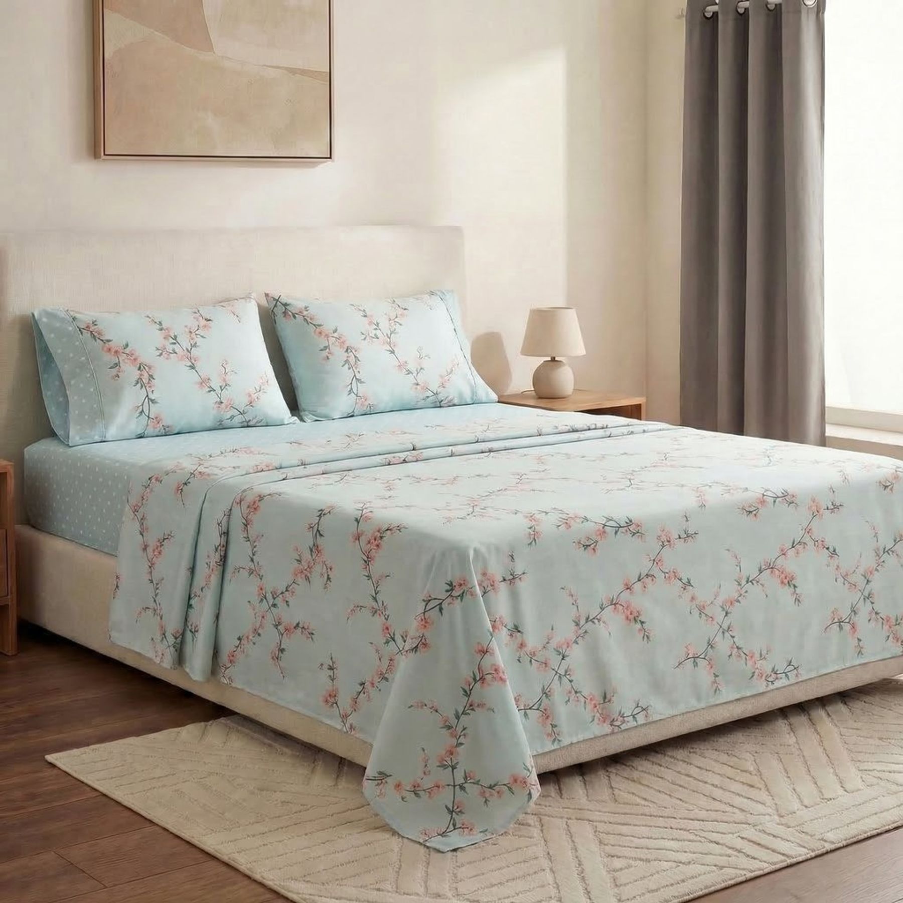 Jogo Cama Casal 4P Microfibra Azul - Oliveira Lopes