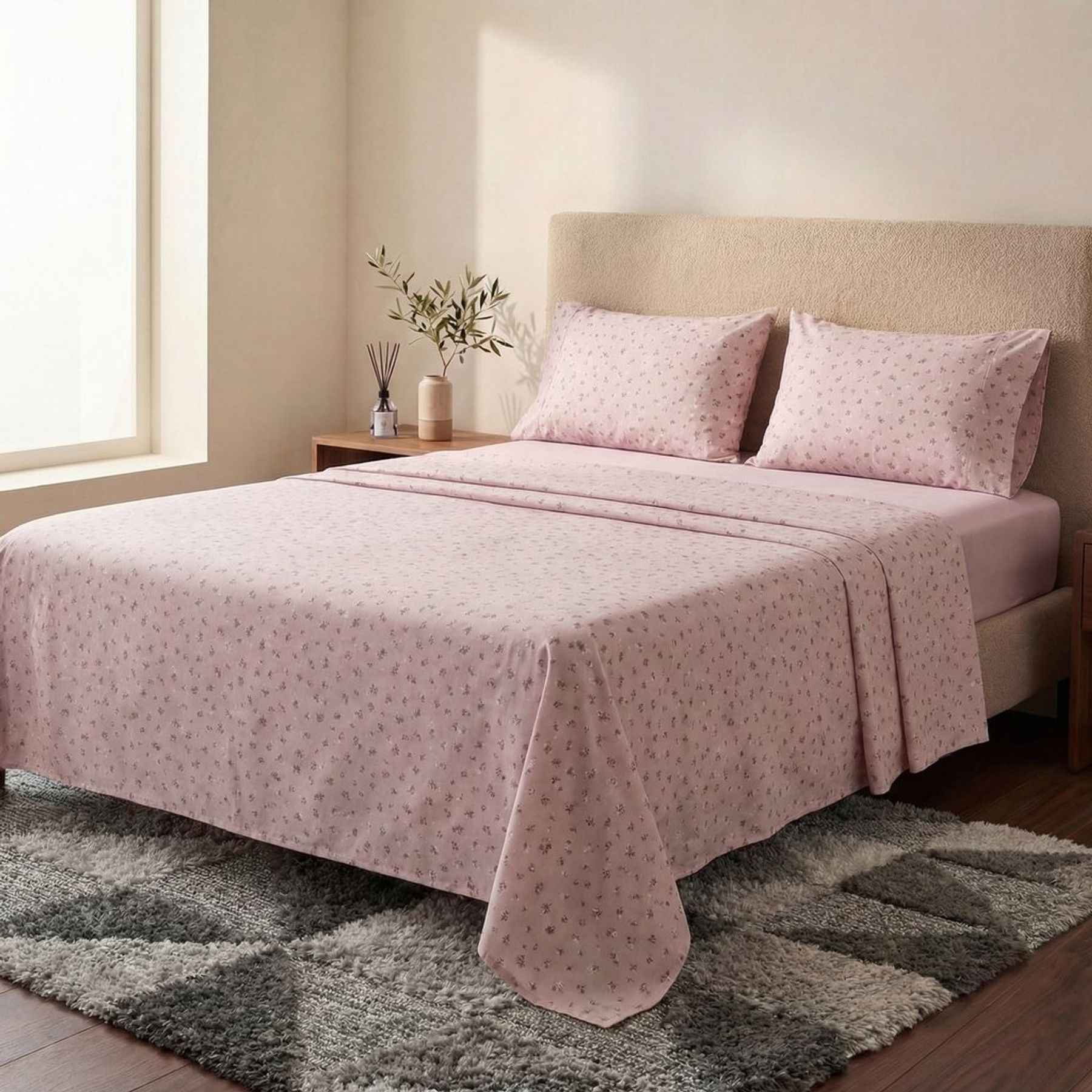 Jogo de Cama Casal 4 Peças Algodão 120 Fios Flore Rosa - PNB