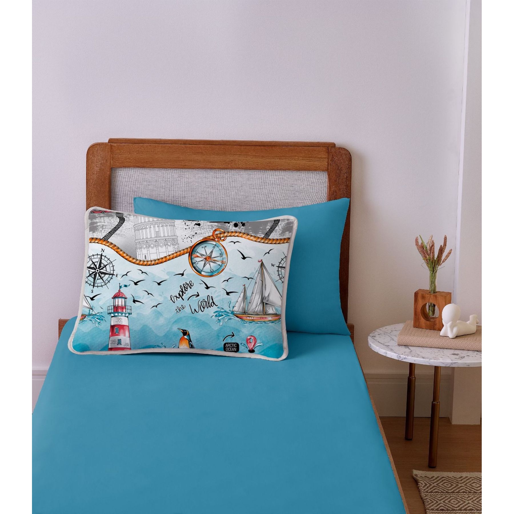 Jogo Cama Casal 4P Microfibra Azul - Oliveira Lopes