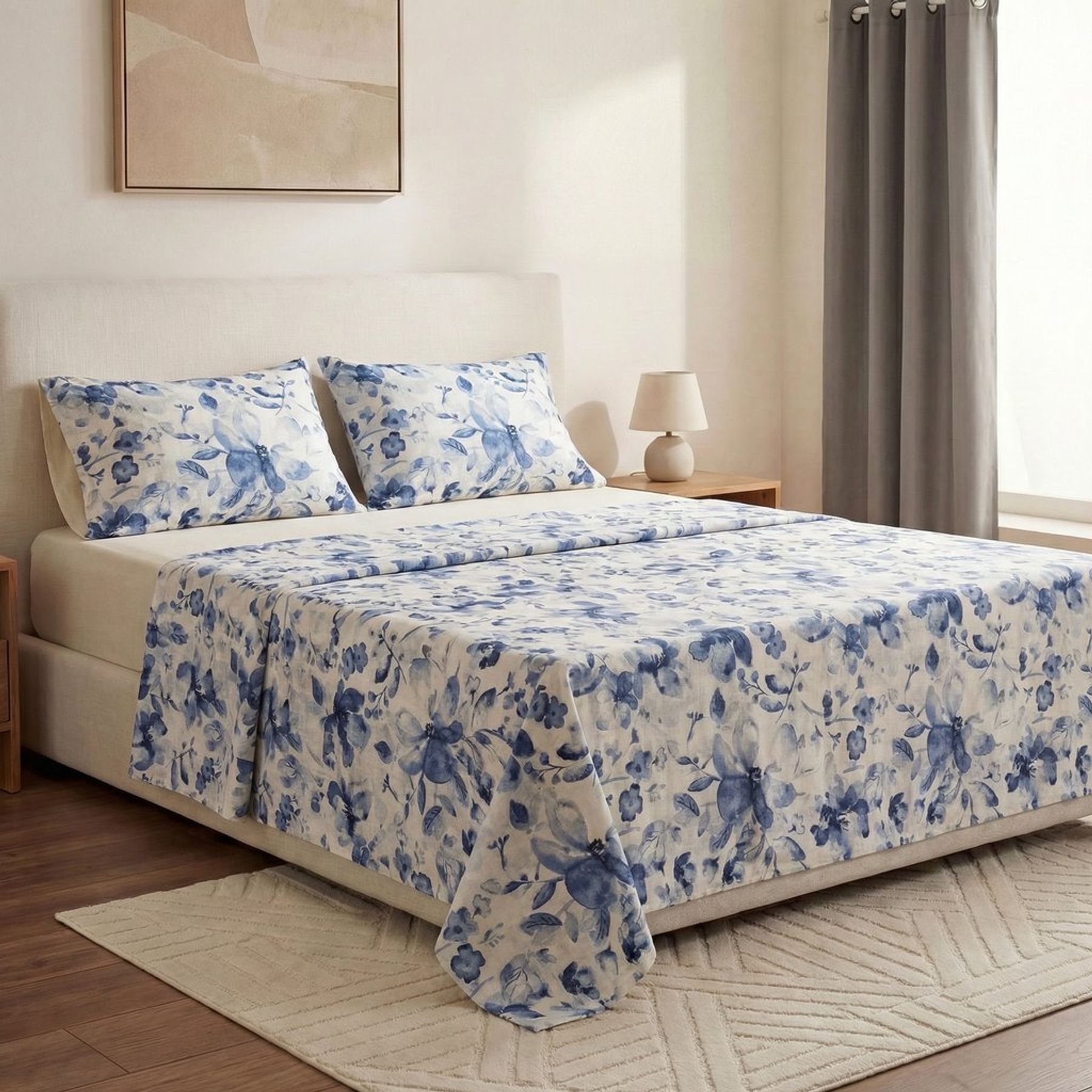 Jogo de Cama Casal 4 Peças Percal 180 Fios Festone Lucky Flowers - PNB