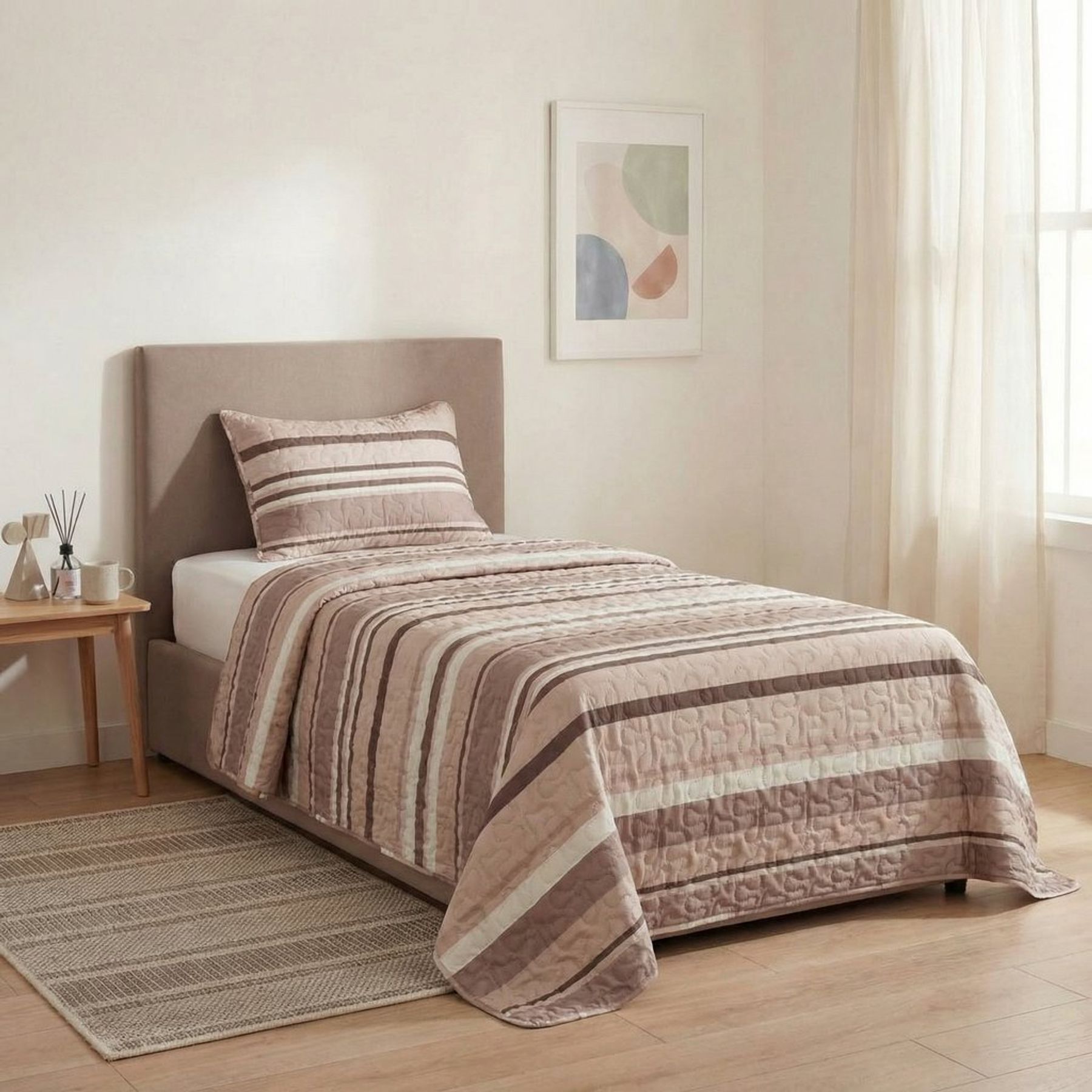 Conjunto de Colcha Queen Matelada Amelie dupla face geométrica bege - Pernambucanas Casa