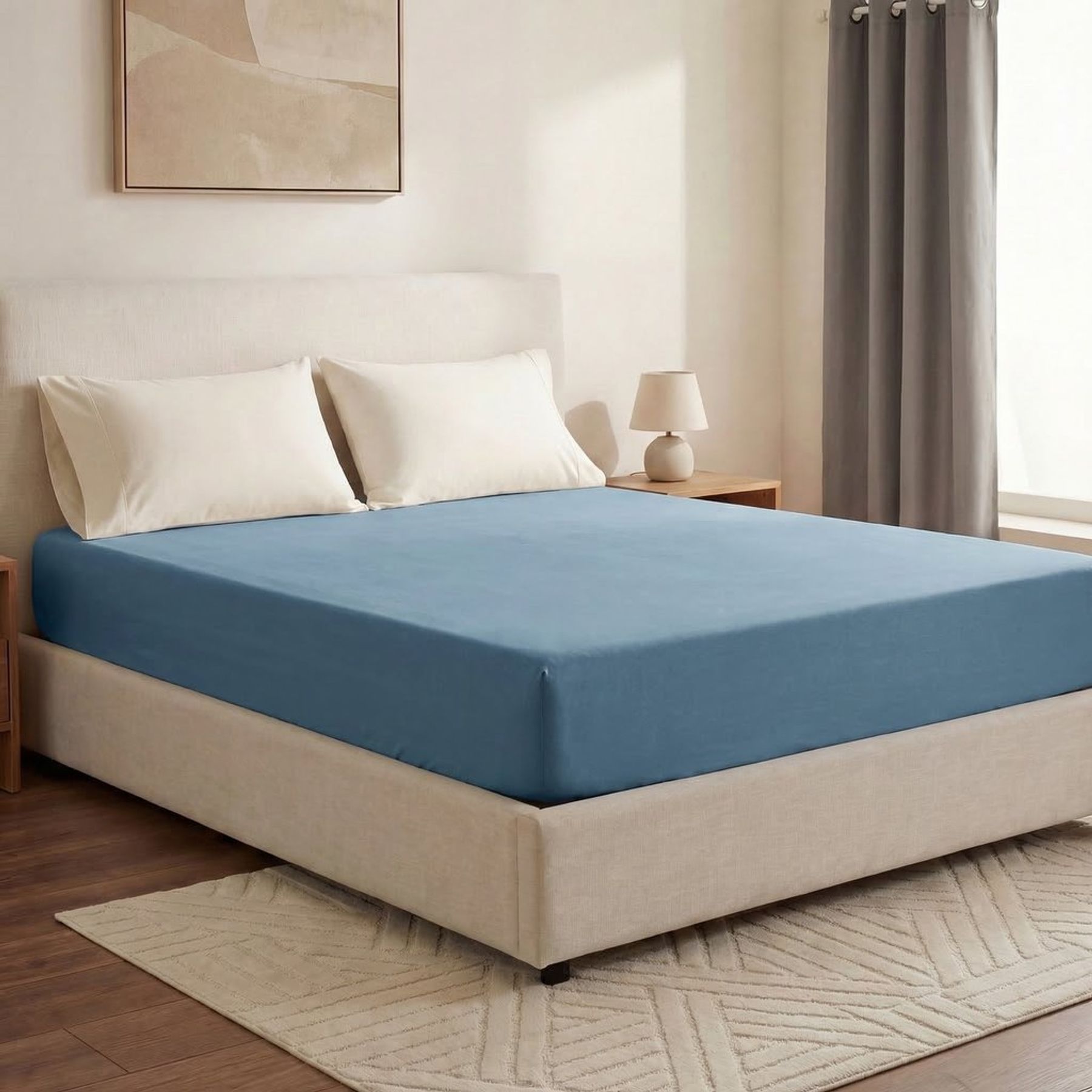 Lençol Queen com Elástico Malha 138x188cm Azul Escuro - PNB