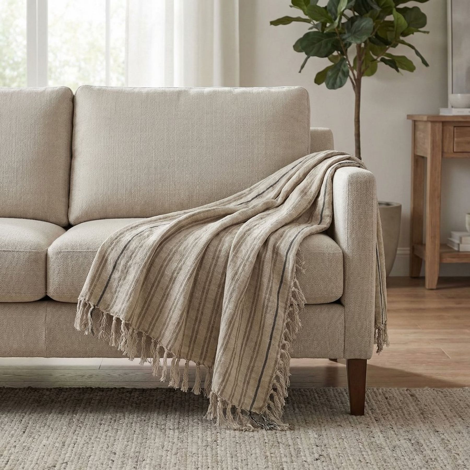 Manta Sofá Zig Zag 140X140 Chevron Bege - Casa Decora