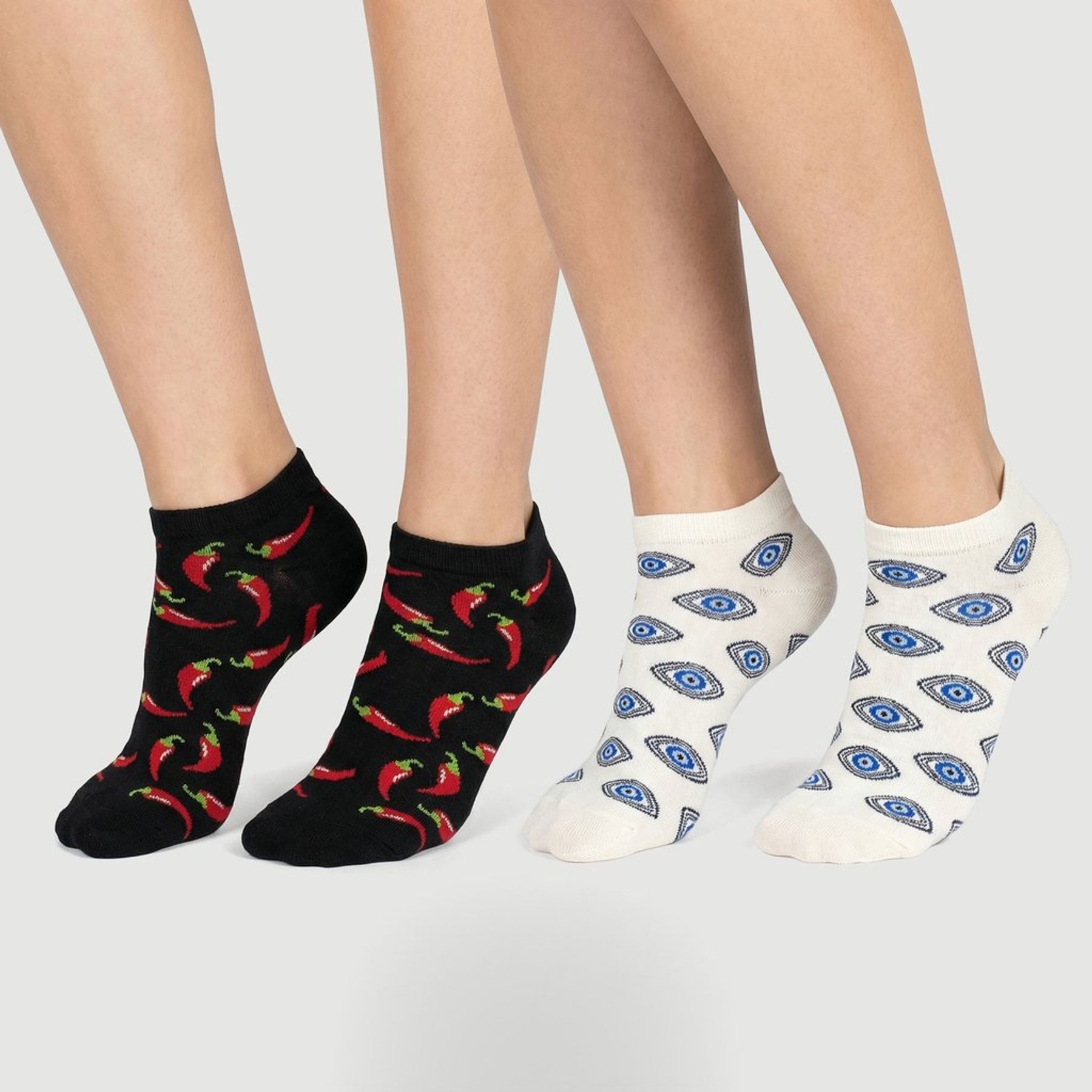 Kit De Meias Feminino Cano Curto Cactos Creme - Uniq
