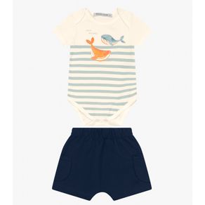 Conjunto Camiseta com Bermuda Menino Trick Nick Bege