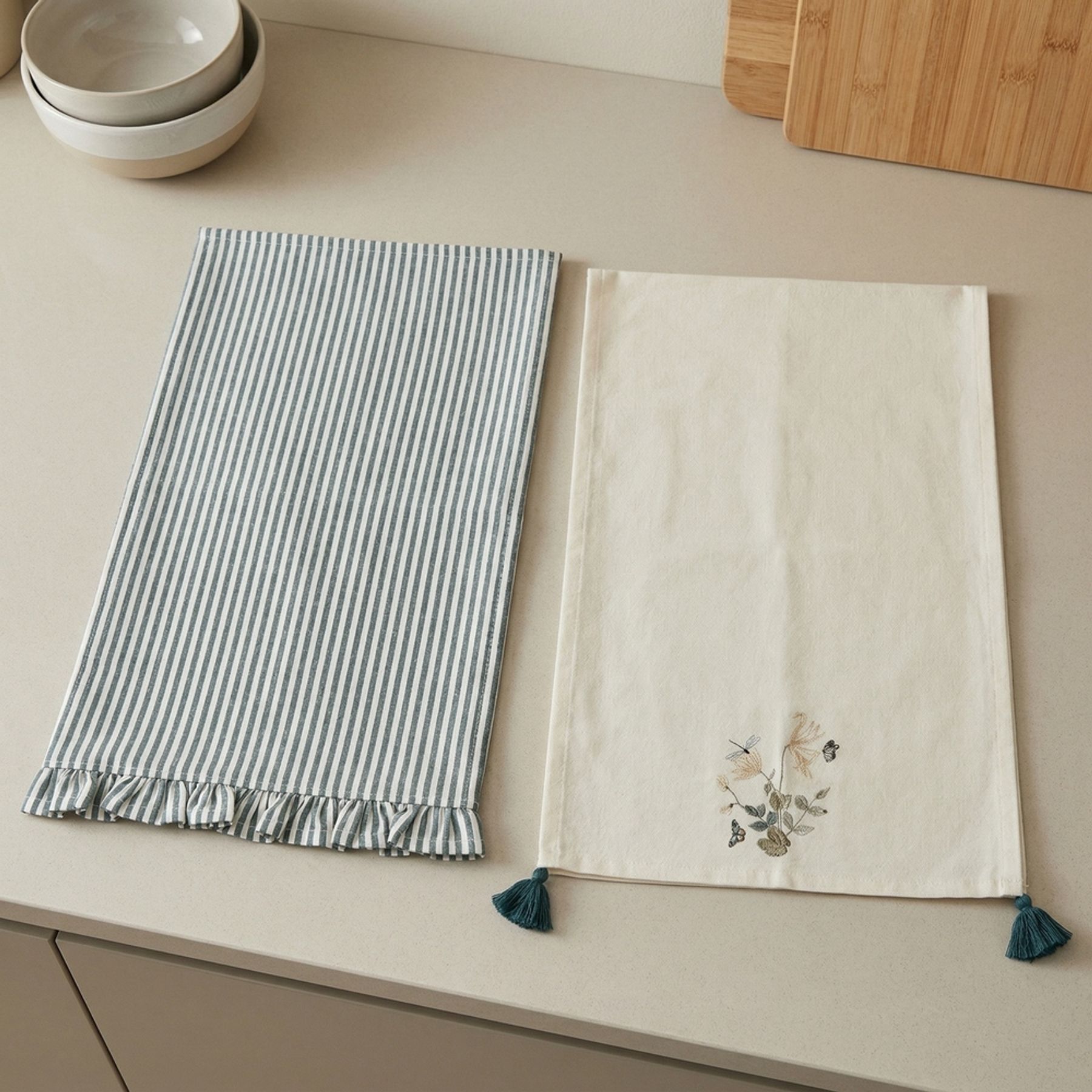 Kit Pano de Copa 2 Peças Jardim Bordado