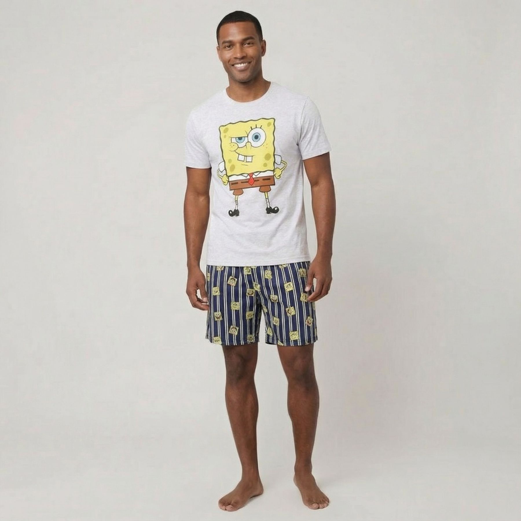 Pijama Manga Curta Bob Esponja Cinza - Nickelodeon